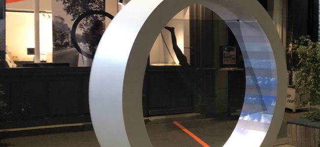 Ici et plus loin… un anneau olympique, l’Atlantique, l’avenue de Clichy, la tour de la Poste… du carton de rue, de la vitre cassée…des cercles et des lignes directrices… pour franchir des caps.