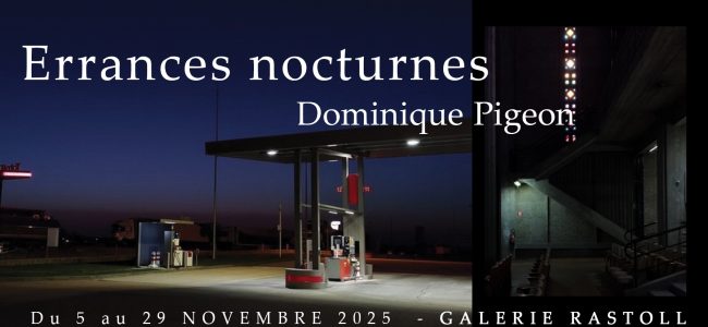 La série photographique de Dominique Pigeon dévoile des rues désertes la nuit, où seuls les arbres et la lumière artificielle et nocturne fait émerger des détails architecturaux invisibles le jour et instaure une ambiance cinématographique. Elle met en scène des lieux publics vidés de présence humaine. Les intérieurs d’appartements ou de bureaux apparaissent mystérieux derrière des vitres floues. Nous sommes ici piégés entre voyeurisme frustré et imagination. L’ensemble est à la fois inquiétant et fascinant, avec une esthétique qui irradie un pouvoir captivant.