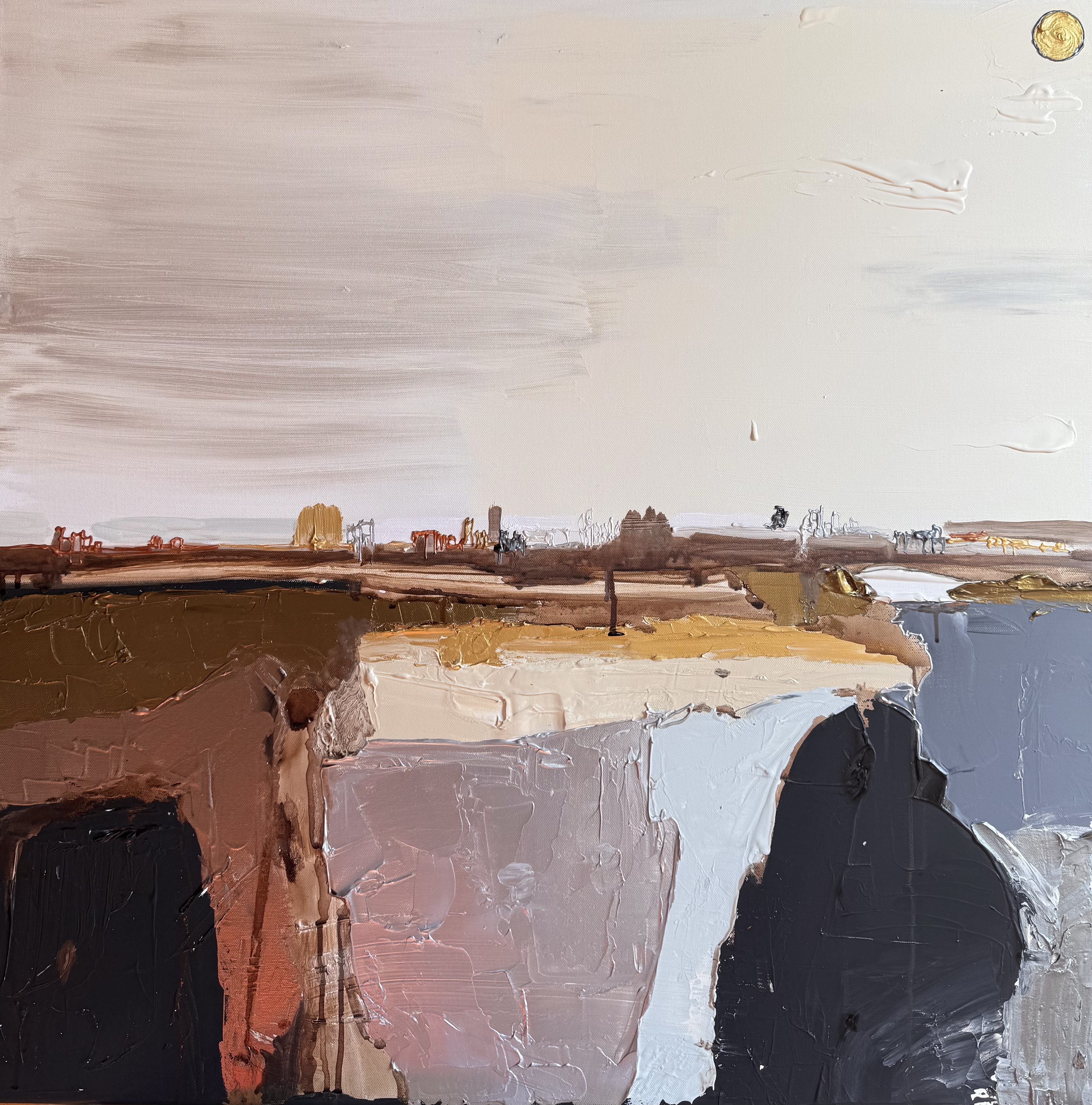 Ses œuvres inventent des mondes possibles, épurés et apaisés, comme une respiration face au réel.