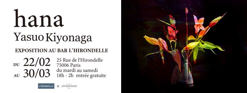 Grâce à la collaboration avec le bar L’HIRONDELLE, 10 pièces d’une série hana de Yasuo Kiyonaga seront exposées du 22 février au 30 mars.