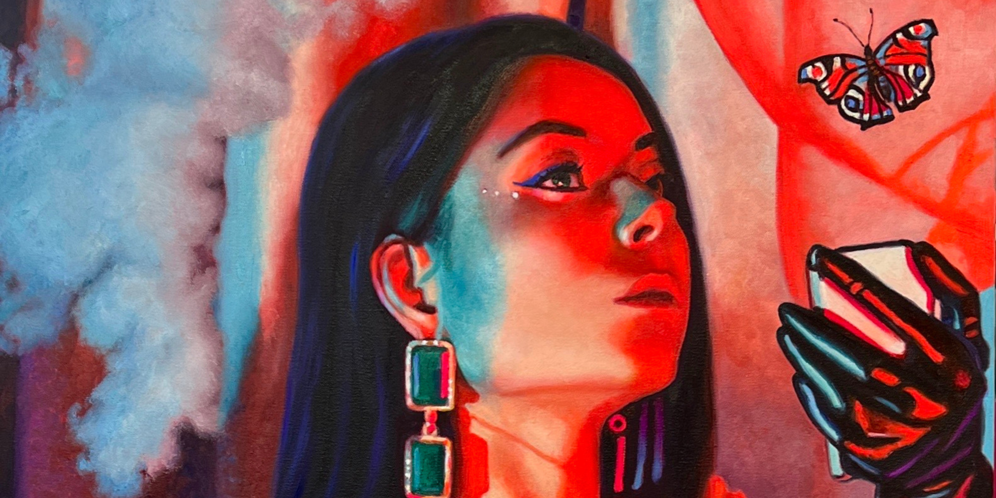 Les peintures d’Alison Blickle sont un voyage narratif, capturant des femmes dans des rituels mystérieux et explorant des archétypes féminins mythologiques. Son travail réimagine des histoires anciennes dans un contexte moderne, en les mêlant à des questions contemporaines. Ses personnages, représentés dans des poses théâtrales, incarnent sa conviction que l’art est un rituel et une performance.